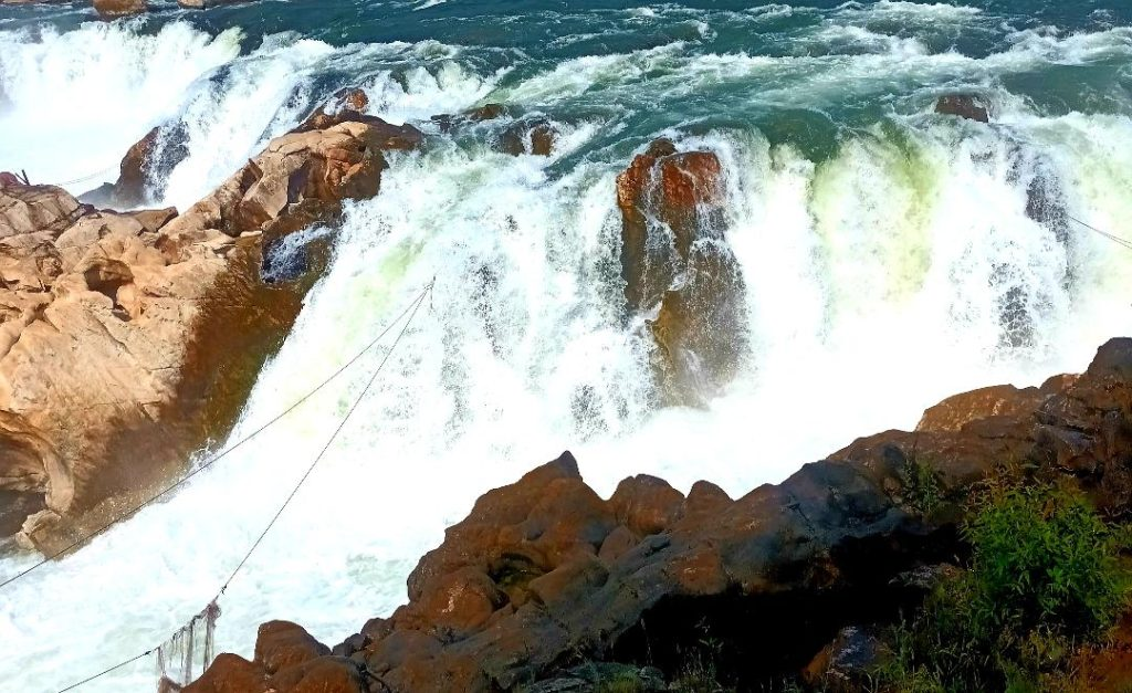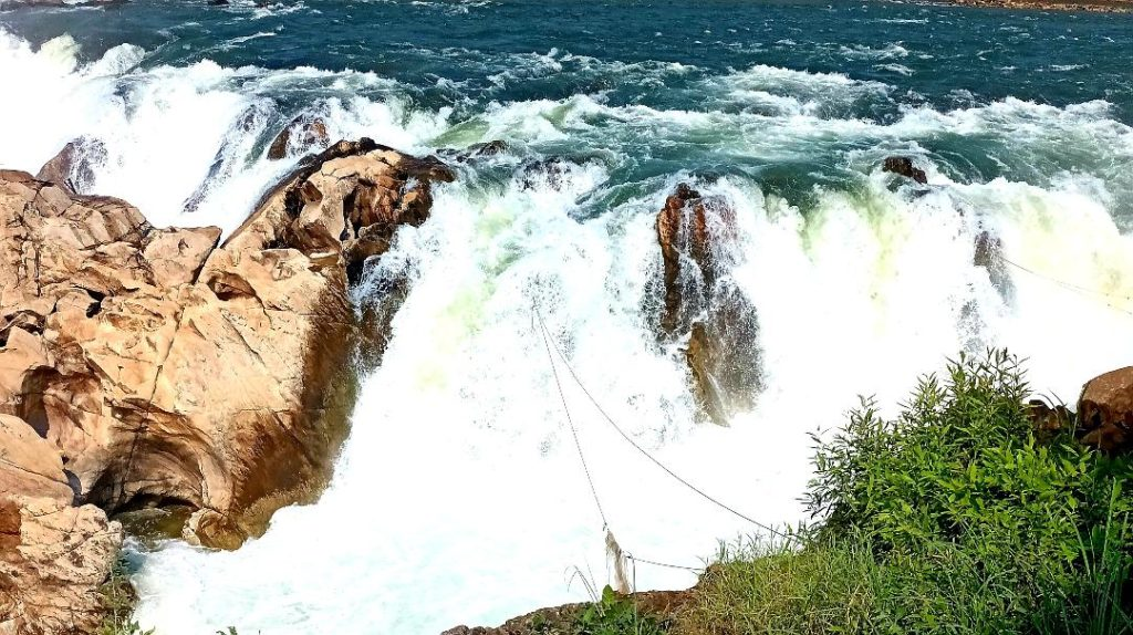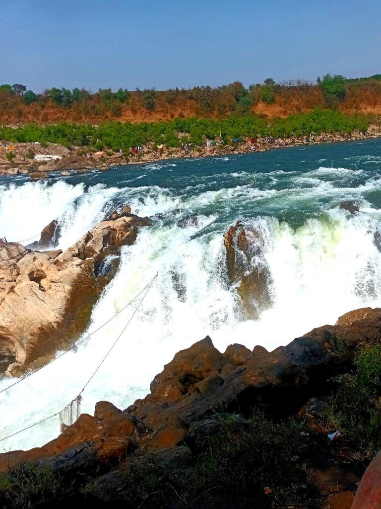 While in the government service, I lived in Jabalpur almost for two years in 2008-09, and ever since the place has undergone many changes for good. For example, infrastructure has been strengthened in terms of roads, hotels and pucca ghat for tourists’ convenience. A cable car service has been provided; the ropeway starts on the east bank of Narmada River, passage provided over and top of the river, and tourists are dropped off at the west bank of the river. Thus, tourists can now enjoy Dhuandhar Falls from both sides of the river. The western bank has a lot of scope for the development and expansion for the tourists; besides, the fall also looks more majestic and eye-soothing from the height on the western bank. The Vrindavan Gopala resort on the western bank of river offers a good choice for a comfortable overnight stay of tourists and temporary stopover for vegetarian culinary delicacies for visitors as well. Images shared in this photoblog (except one so mentioned) were taken from the western bank.