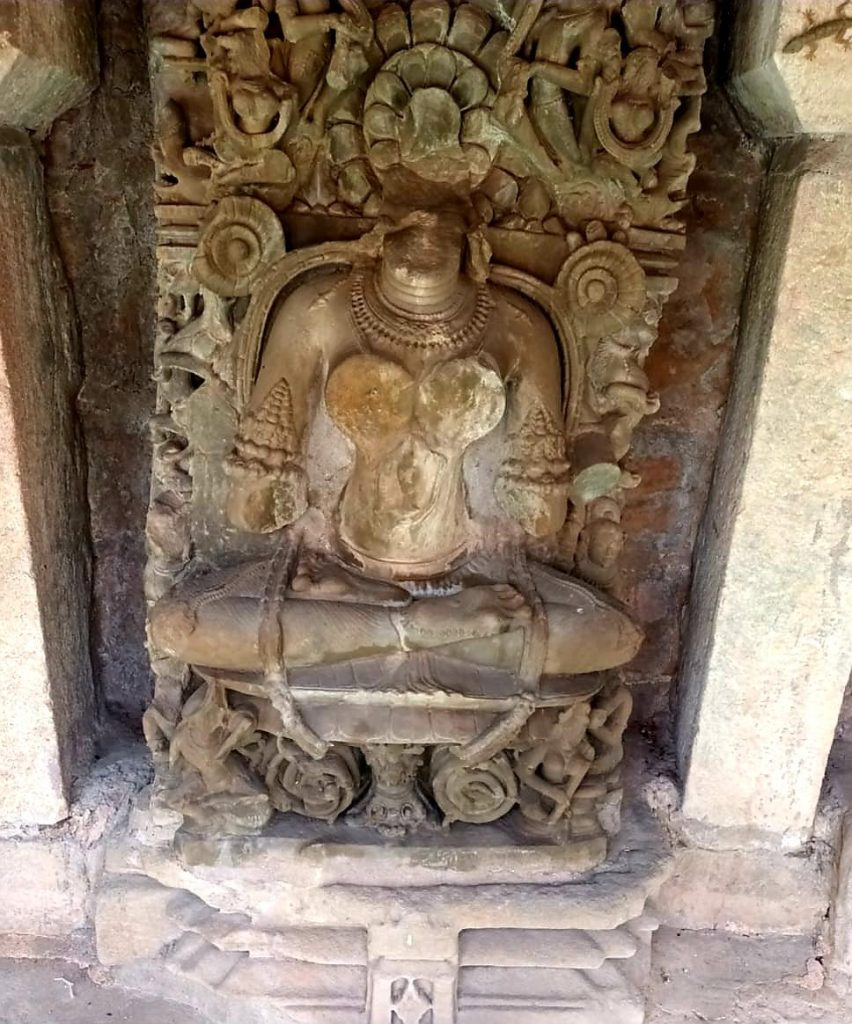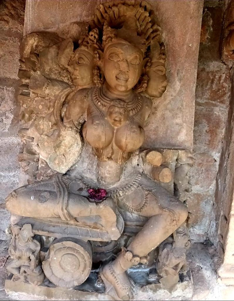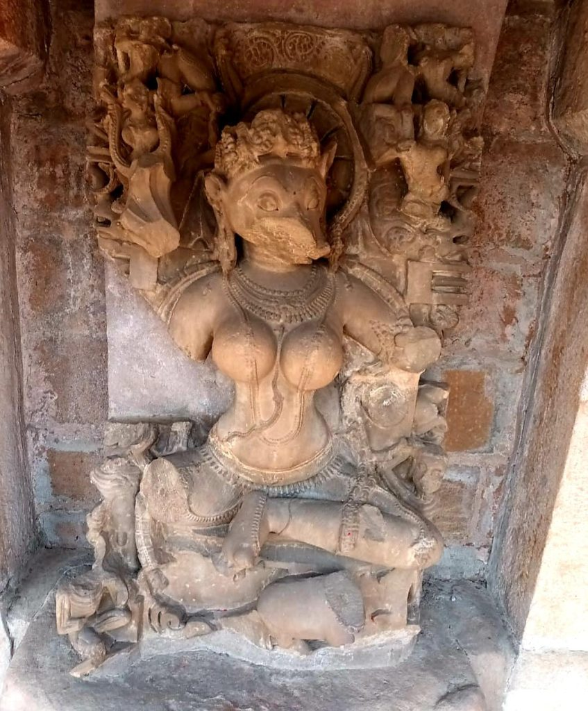 Among the stone images of Yoginis, majority of them are properly named by the Archaeological Survey of India while some others remain unidentified. The eighty-one images represent Matrikas i.e. mother goddesses from an earlier time. Matrika is also called Mataras or Matri, a group of goddesses in Hinduism, variously depicted as a group of seven or eight i.e. Saptamatrikas or Ashtamatrikas. In the Hindu text Brihat Samhita, Varahamihira has described Matrikas as forms of Parvati taken by her with the cognizance of various deities commensurate with their names. So, these Yoginis (Matrikas) represent those deities and their divine energies; for illustration, Brahmani for Brahma, Vaishnavi for Vishnu, Maheshvari for Shiva, Indrani for Indra, Kaumari for Kartikeya, Varahi for Varaha, Chamunda for Chandi, Vinayaki for Ganesha, and so on so forth. In the Hindu Sect Shaktism and Tantra, the Yoginis have a significant role in that they are supposed to assist Parvati in her fight against demonic forces. Three remaining cells are represented by the images of Shiva (2 cells) and Ganesha (1 cell). As mentioned earlier, the majority of the surviving stone images have been badly damaged by the vandals, with face broken, trunk and limbs defaced or removed, and some surviving only from the waist down.